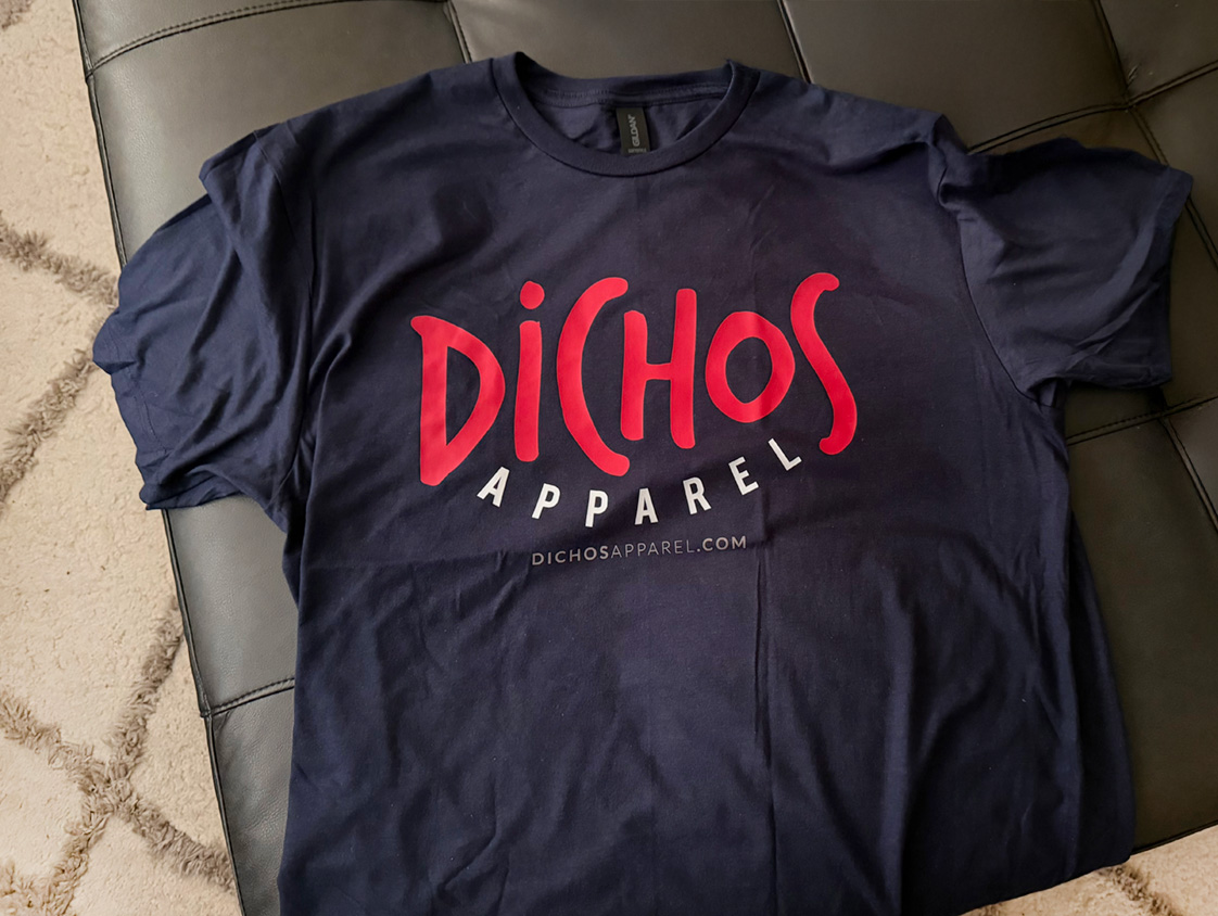 Our own Dichos Apparel, LLC brand for influencers and employees. It's made of 100% ring-spun cotton and is soft and comfy. The double stitching on the neckline and sleeves add more durability to what is sure to be a favorite!